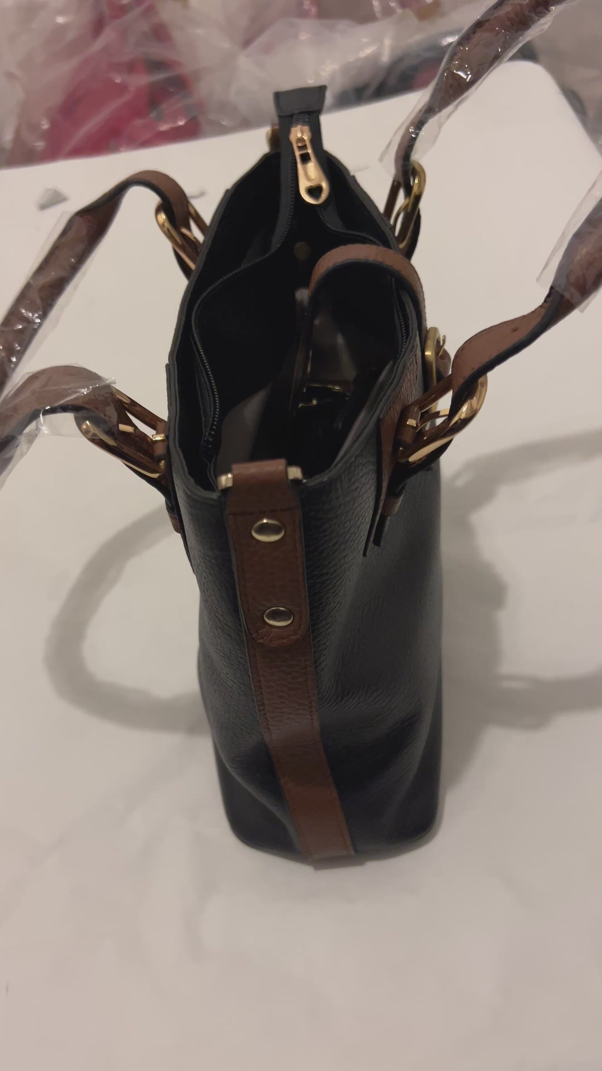 I’ve been using this black and brown leather bag for a couple of weeks now, and I’m really happy with it! The leather feels sturdy and high-quality, and the dual-tone color makes it look very elegant. It’s the perfect size not too big, not too small and fits all my daily essentials with ease. The zip works smoothly and the handle is comfortable to hold. Overall, it’s a great value for the price. Would definitely recommend!