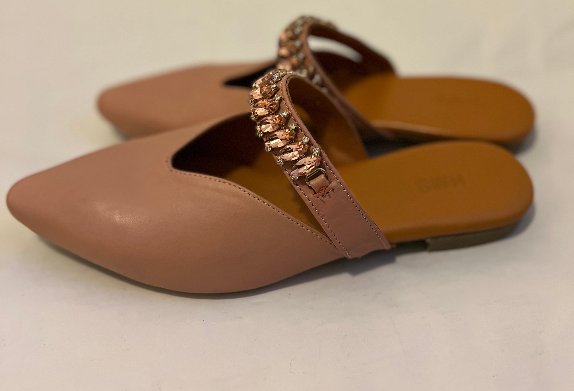 Pointed-Toe Mules with Stone Embellishments